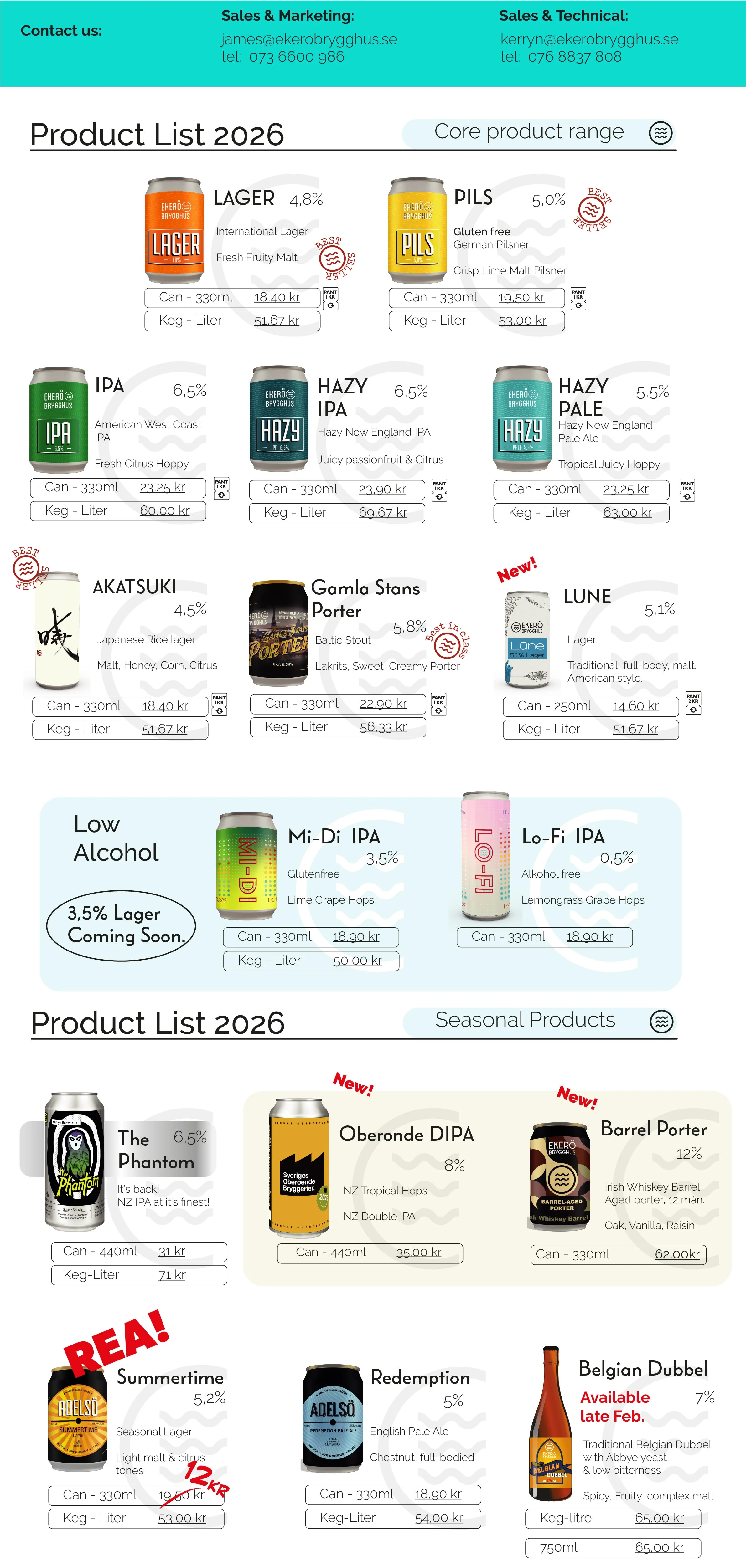 Products with keg liter prices can be filled on demand in Steel returnable kegs 30l and 20l, And Key kegs 30l and 20l one way.